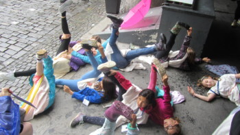 Ganz nach dem Motto «Kleopatra, neu verflucht» bauten wir eine Menschenpyramide, mit dem Bundeshaus im Hintergrund.