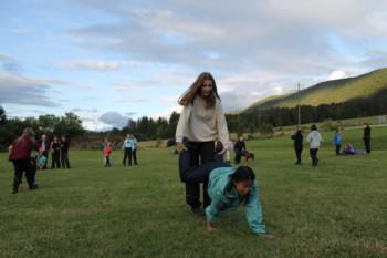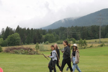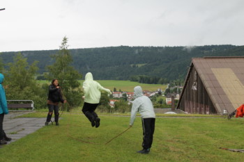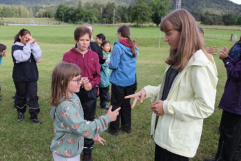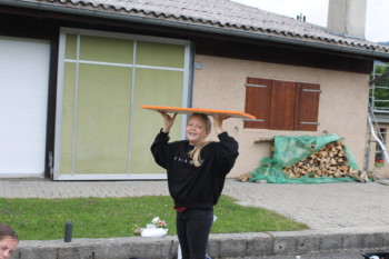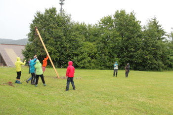 Am Abend betätigten wir uns dann sportlich bei einem Gelände-Game. Für dieses Spiel zeigte sich sogar die Abendsonne. Vier verschieden Gruppen versuchten mit gesammelten Holzklötzchen, im Hauptcamp oder auf dem Schwarzmarkt Stifte und Formen zu ergattern, um ihre weisse Fahnen zu bemalen. Dabei mussten sie sich vor den zwei Taschendieben in Acht nehmen, welche auf dem Spielfeld ihr Unwesen trieben. Schlussendlich gewann die Gruppe, welche ihre Fahne mit den meisten Farmen und Formen verziert hatte.