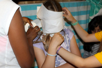 Aus Angst vor dem Fluch wurde an diesem Abend nichts mehr geredet. Bei einem PC-Game (Postenlauf, an dem die Kinder ohne zu reden Rätsel lösen müssen) suchten die Kinder nach einer Lösung, um die Leiterinnen wider zum Sprechen zu bringen.