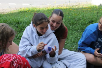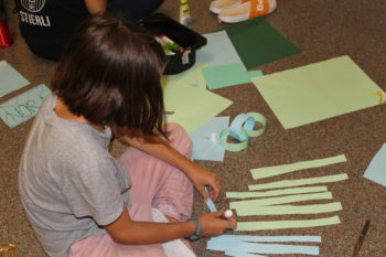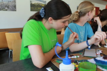 Nach der Mittagspause geht es direkt mit demselben Programm weiter, da es noch viel zu tun gibt. Vor allem die Ältesten sind eifrig dabei, unser Hof-Falkenstein-Wappen in großer Vielfalt auf Karton zu übertragen, und machen sogar noch ein wenig Überzeit.