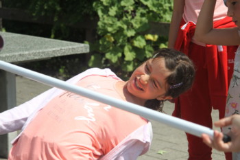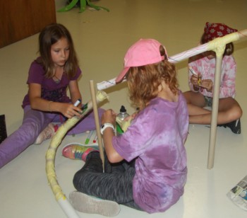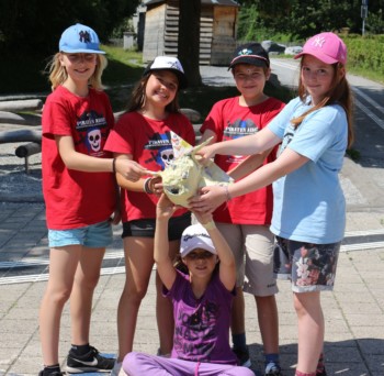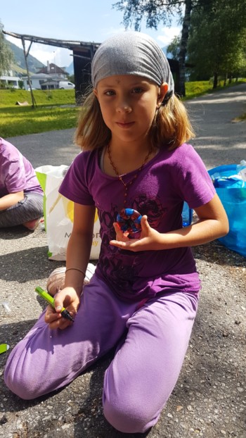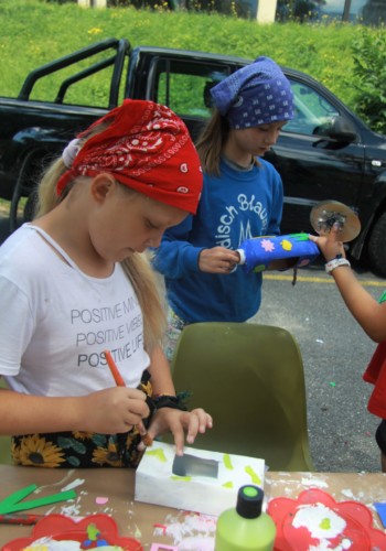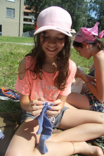 Heute liessen wir endlich die hitzige Wüste hinter uns und gelangten in ein waldiges Gebiet. Diesen Morgen ging es darum, Abfall wiederzuverwerten, um das Ökosystem weniger zu belasten. So bastelten wir Vogelhäuschen aus Tetrapaks, magnetische Blumen aus PET-Flaschen und bestickten Socken oder das Lager-T-Shirt mit Blumen. Auch Traumfänger aus alten CDs und eine Kugelbahn aus Kartonrollen konnten gebastelt werden. Ein weiteres Mal kamen wunderschöne und kreative Kunstwerke zustande, die zum Staunen brachten.