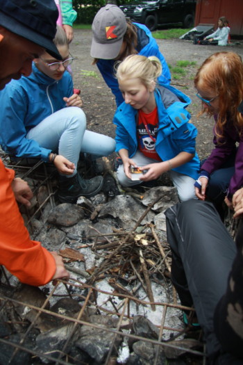 Den heutigen Morgen verbrachten wir Forscherinnen in unserem bevorzugten Habitat: im Wald. An verschiedenen Posten machten wir Feuer, errieten wir verschiedene Tiergeräusche, lernten wir schnitzen und beschäftigten wir uns mit der Flora und Fauna des Regenwalds und der Schweizer Wälder. Kurzum – wir wendeten unser Wissen, das wir uns in den letzten zwei Wochen angeeignet hatten, an. Barfuss spazierten wir zu unserem Lagerhaus zurück, wo uns die Küche mit Risotto erwartete.
