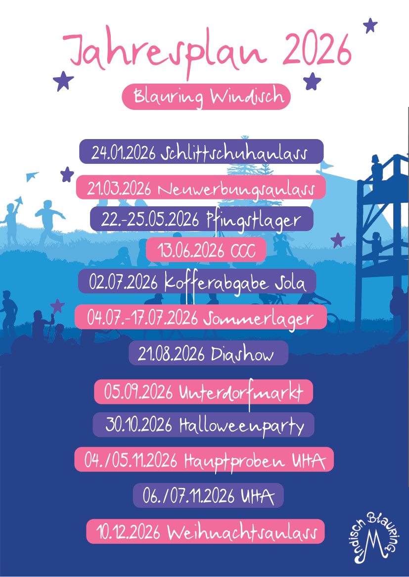 Unser Jahresplan für 2026 ist da! Dies sind unsere wichtigsten Anlässe, tragt sie in eurer Agenda ein, damit ihr sie ja nicht vergesst. Es kann sein, das wir kurzfristig noch mehr Anlässe ankünden werden. Über diese Informieren wir euch via Flyer und Newsletter.