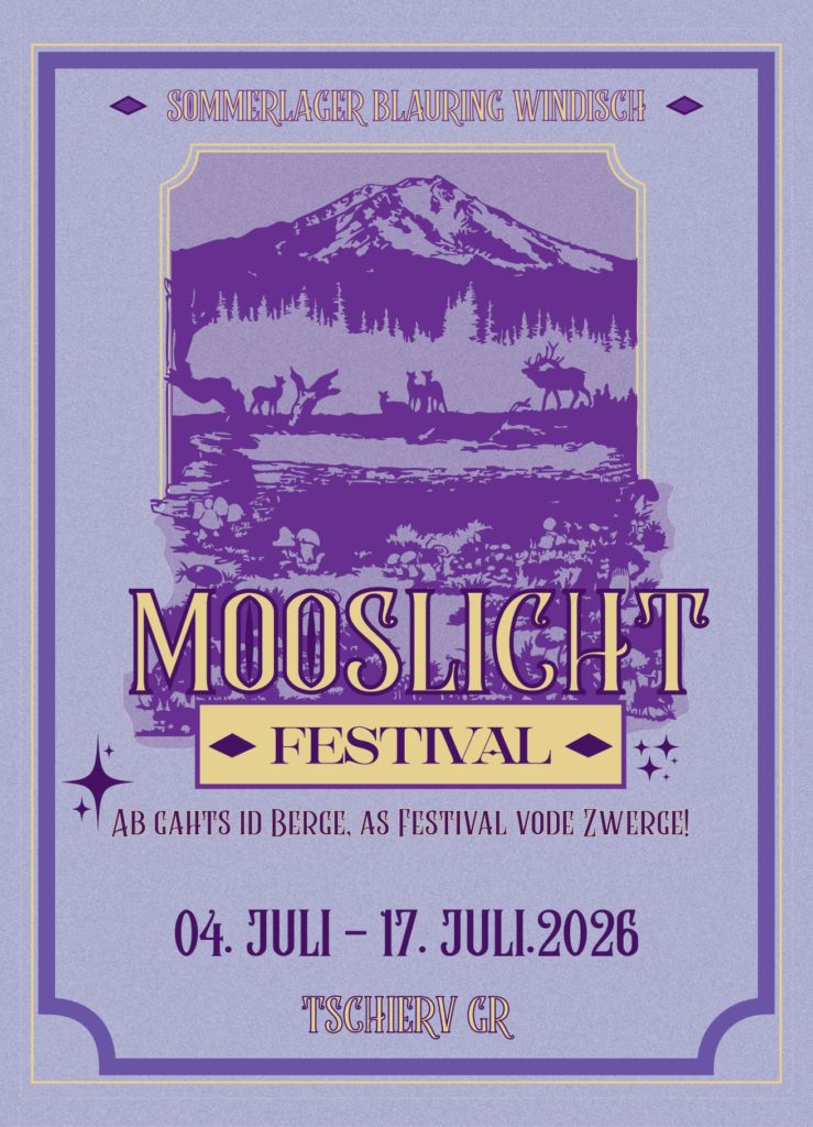 Was erwartet uns dieses Jahr? 2026 heisst es: Ab gahts id Berge, as Festival vo de Zwerge! Die Zwerge haben uns eingeladen, gemeinsam mit ihnen hoch oben in den Bergen das legendäre Mooslichtfestival zu feiern. Zwischen Felsen, Wäldern und Bergpfaden tauchen wir in ihre Welt ein und helfen ihnen bei den Vorbereitungen.